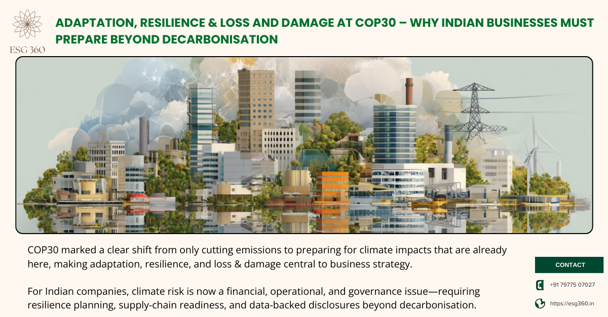 ESG Adaptation, Resilience & Loss and Damage at COP30 – Why Indian Businesses Must Prepare Beyond Decarbonisation Read More » January 2, 2026